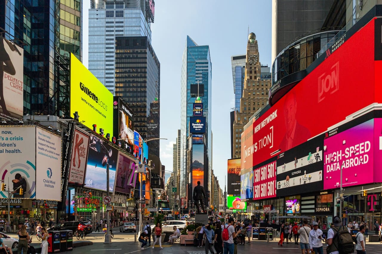 ✅ Terminez la journée à Times Square ! Admirez les écrans géants qui dégagent une lumière si puissante qu’on se croirait en plein jour. Entrez dans les magasins mythiques (M&M’s World, Hershey’s Chocolate World…), faites du shopping et admirez la foule depuis le sommet de l’estrade TKTS.